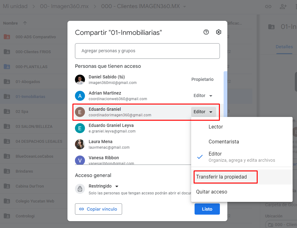 Paso 6: Seleccionar; Transferir la propiedad